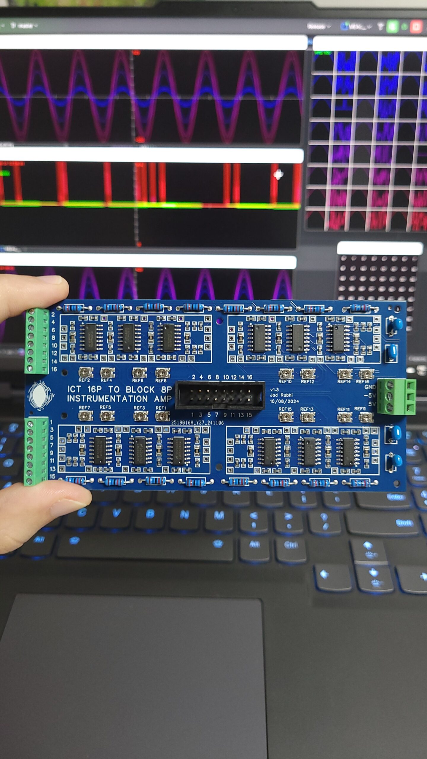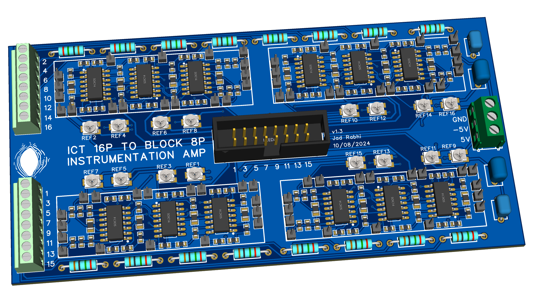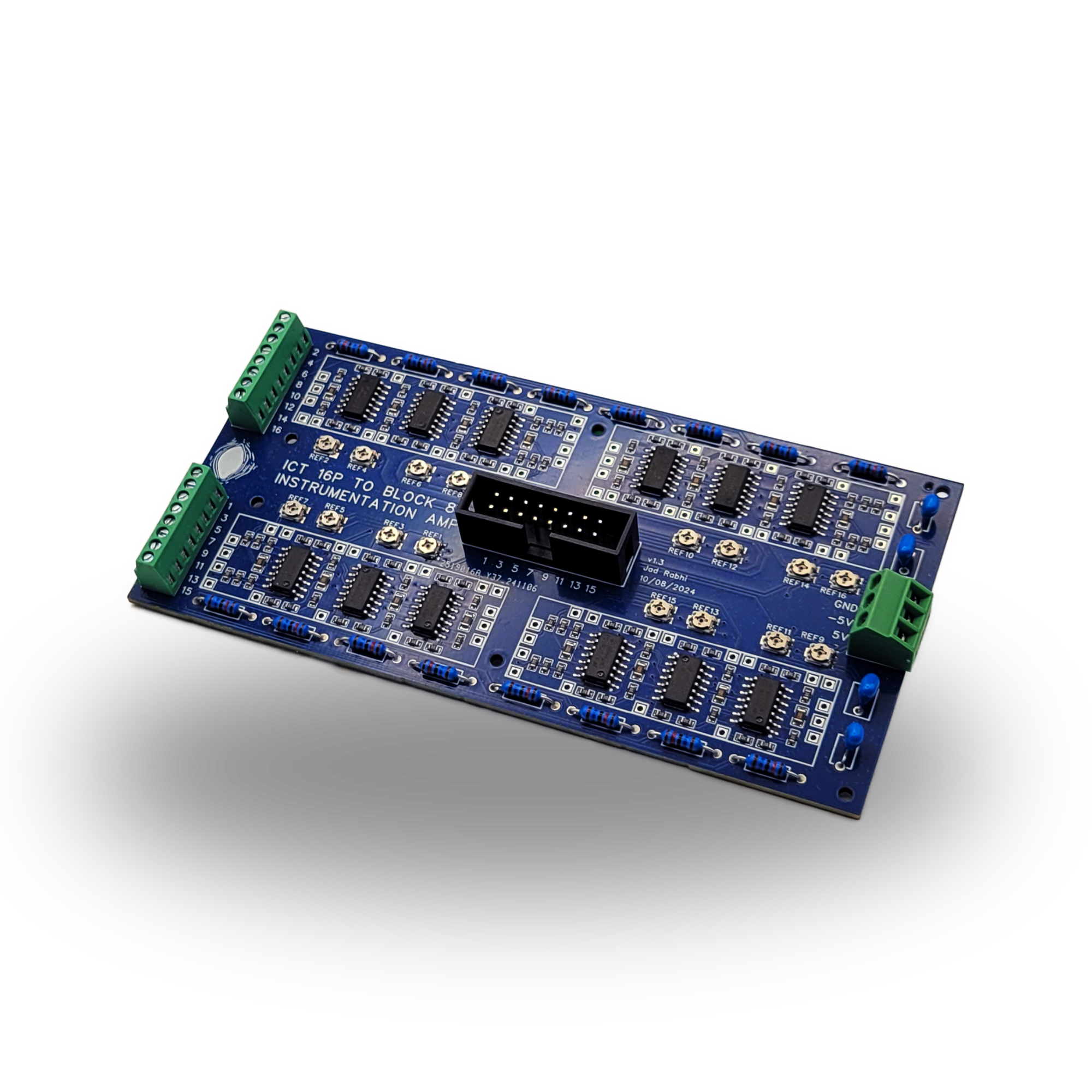 16X Instrumentation Amplifier is a standalone amplification board designed to amplify 16 analog signals in parallel using precision instrumentation amplifiers.
